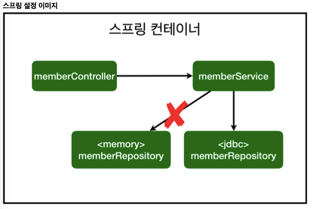 회원을 저장하는 역할은 memberRepository가 하지만, 구현을 메모리에 할 거야 아니면 db랑 연결해서 jdbc에 할거야 이 차이가 있다.