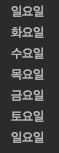 {"월", "화", "수", "목", "금", "토", "일"}