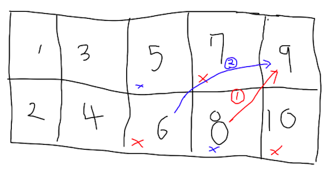 - i = 9라고 한다면, 9 자리에서는 7과 10의 자리를 택할 수 없다. 그렇기에 9의 자리에서 택할 수 있는 자리는 6과 8이 남는다. (5의 경우는 5를 택하면 8도 택할 수 있기 때문) 그렇기 때문에 점화식은