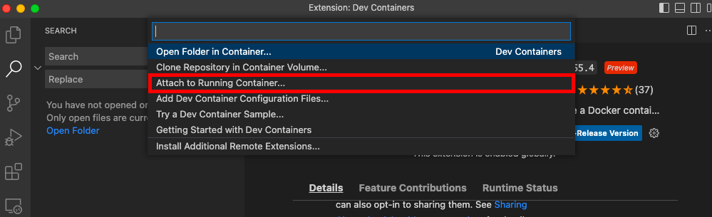 1. VS Code의 Extensions(Shift + Command + X)에 들어가 Dev Containers 플러그인 설치