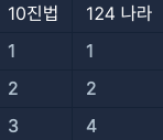 2. 위에서 나눈 몫에 대해 1을 빼고 3으로 다시 나눈 나머지를 '124'의 index로 가지며 앞의 값의 앞쪽에 붙여준다.