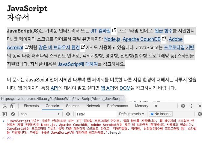 콘솔을 이용하면 파일을 만들지 않고도 자바스크립트를 실행할 수 있다.