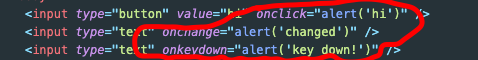 onclick 속성 : 값으로 반드시 자바스크립트가 와야 한다. onclick의 js 코드를 기억하고 있다가 onclick이 실행됐을 때 js값도 실행된다.